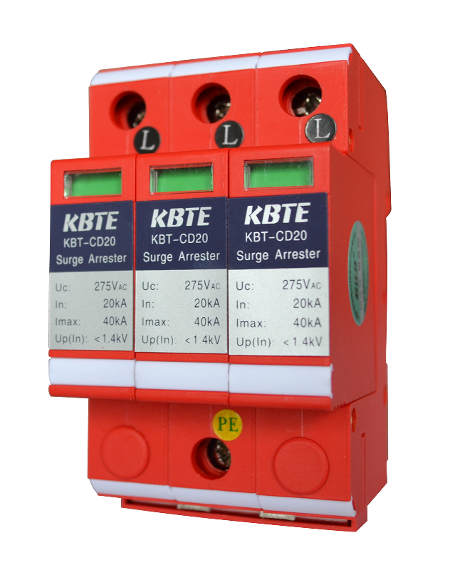 KBT-CD20電涌保護器,適合TT、TN-C、TN-C-S等各種電網制式。該系列電源防雷模塊并聯安裝在電源線路上,不影響電源線路的正常工作。模塊式設計,體積小,36mm標準軌道安裝,可安裝在各種電源、開關箱和其它電氣設備內。